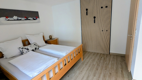 Die großzügig gestaltete 75m² große Ferienwohnung befindet sich im 1. Stock und bietet Platz für bis zu 5 Personen. Dabei stehen unseren Feriengästen zwei Doppel-schlafzimmer und ein Einzelzimmer zur Verfügung.